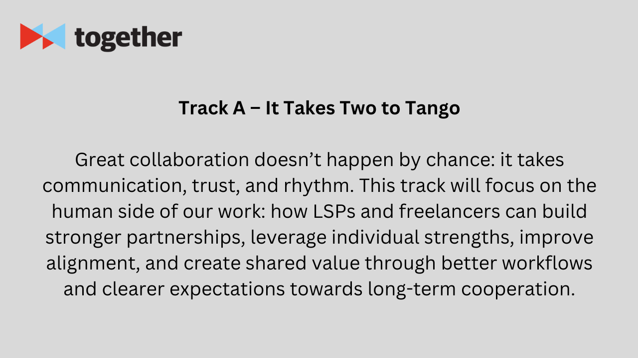 Join us at Together 2026 as we explore how meaningful collaboration between freelance linguists and language service providers (LSPs) shapes the future of our industry. Тhis year’s theme highlights The Power of Co-CreationCollaboration on Focus where combined expertise, clear communication, and mutual respect lead to shared long-term success.